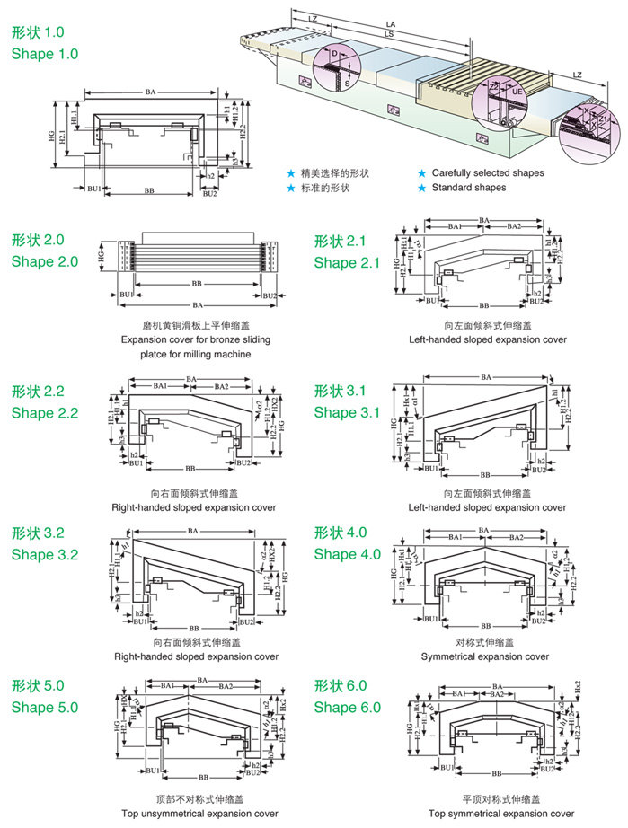 標(biāo)準(zhǔn)形狀橫梁伸縮式鋼板護(hù)罩設(shè)計(jì)圖 |